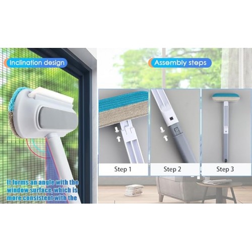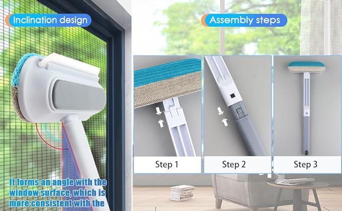 ✅ أداة تنظيف 3 في 1: يجمع بين فرشاة إزالة الأتربة، ومسّاحة النوافذ، ومزيل الوبر في تصميم واحد.